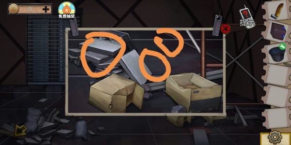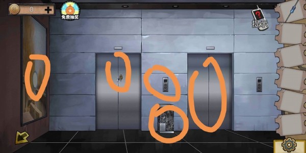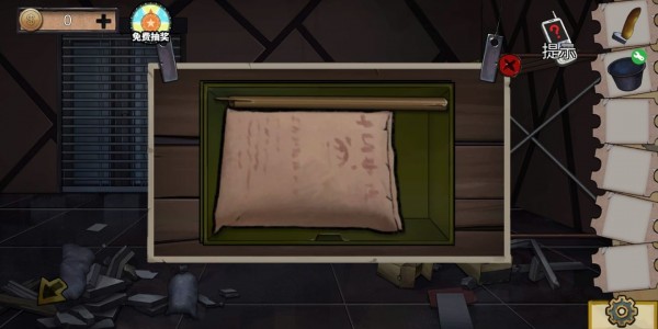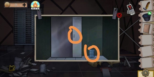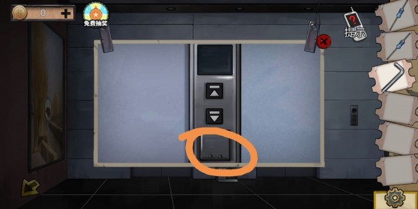 7、通过以后来到电梯间,在电梯门上拿到捡到,用剪刀剪开图画拿到六角扳手和电阻,在*桶上拿到电阻。