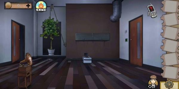 33、根据女主视角第一个房间里面图画上的提示,密码是流星,钥匙,花,田,打开唱片机下面的暗格拿到滑轮。然后滑轮与绳子组合,传给女主。
