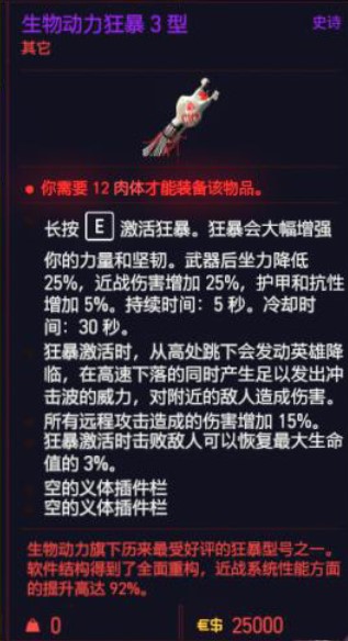 赛博朋克2077生物动力狂暴获得方法介绍