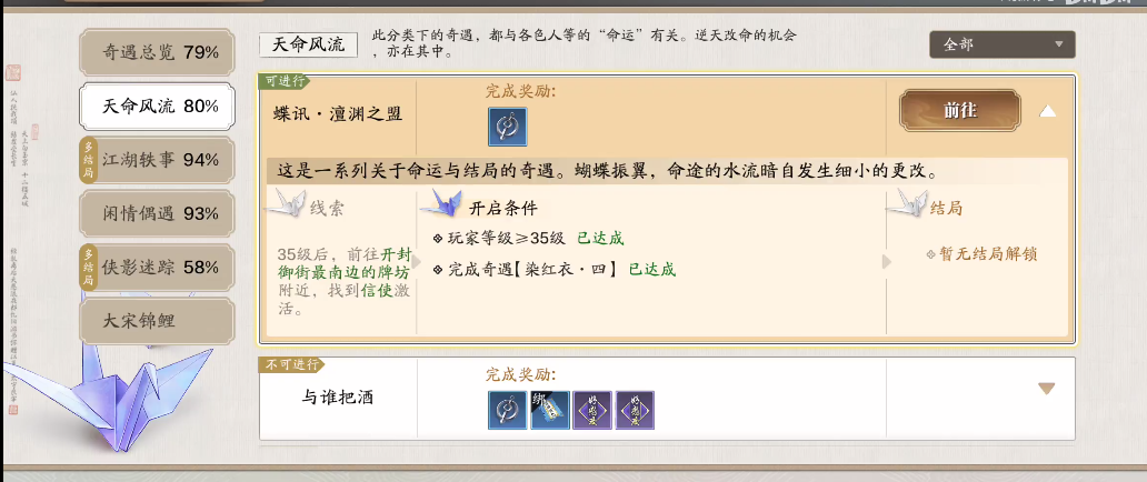 1、首先要等级达到35级,完成前置,才可以触发这个奇遇;