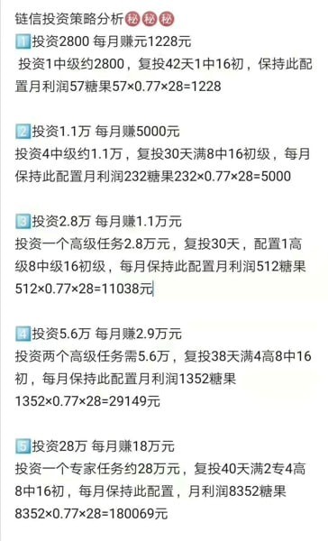现在链信的cct价值都是在4美元一个,如果是直接购买,投资表如下所示