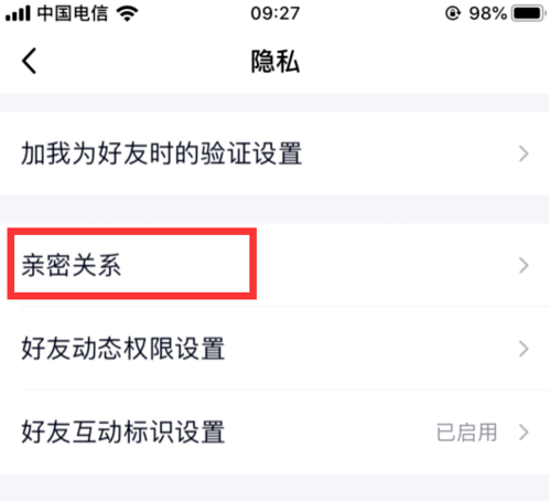 进入后,就有亲密关系的选项,如果没有这个选项,说明版本太低,要升级才有。