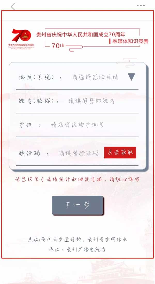 贵州省庆祝**成立70周年融媒体知识竞赛活动时间:2019 年9 月10日至9月24日16时。