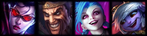 3、T2:暗夜猎手-薇恩、荣耀行刑官-德莱文、暴走萝莉-金克斯、麦林炮手-崔斯塔娜。