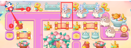 2、开始在左上角一个飞机,先锁定下面的钱袋,之后等到兔子走在标红位置,在锁定旁边的栏杆。