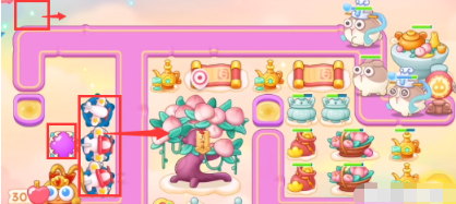 3、障碍物清理空出的位置放置飞机加魔法球,全部满级,之后直接锁定桃树。