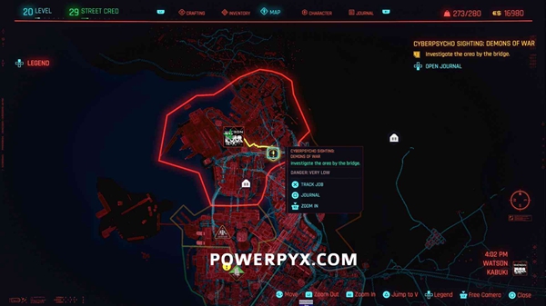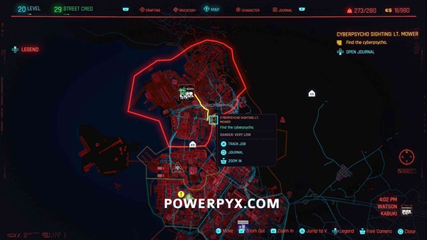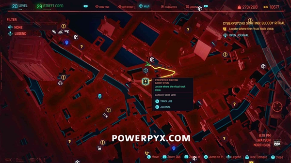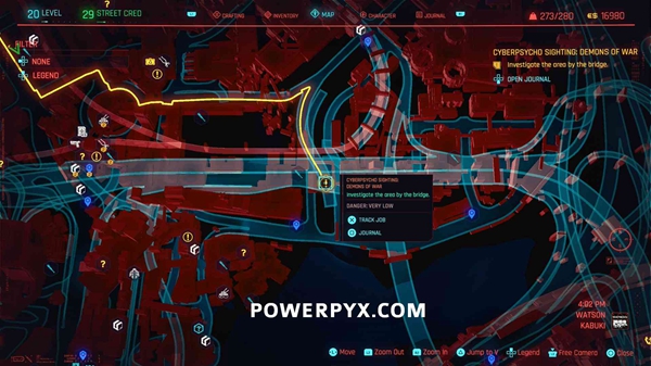 要求:必须完成故事任务“救援”。然后去黄色的工作地点接到有关Cyberpsycho的电话(触发Gig任务)。