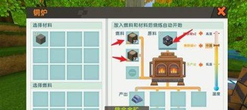 4、把铁合金矿放入黄铜熔炉里,再加入2份燃料。