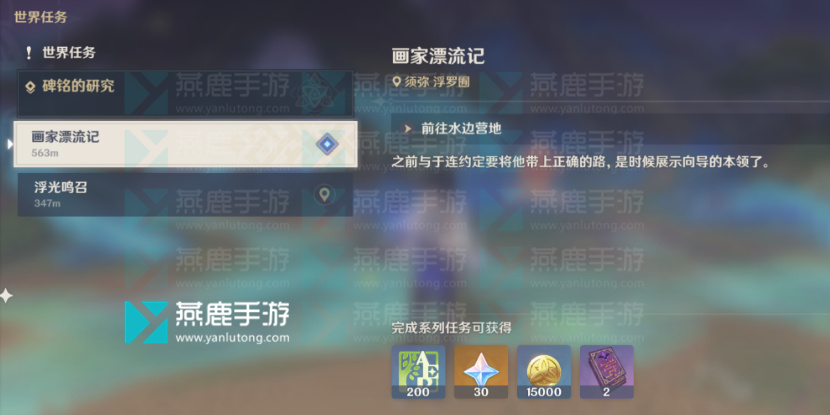 在原神3.6版本中更新了不少的世界任务。[画家漂流记]就是其中之一。该任务需要分成几天的现实时间来完成,其中第三天的流程如下。今天小编为各位玩家带来了原神画家漂流记第三天攻略,有需要这个攻略的玩家快来看看吧。