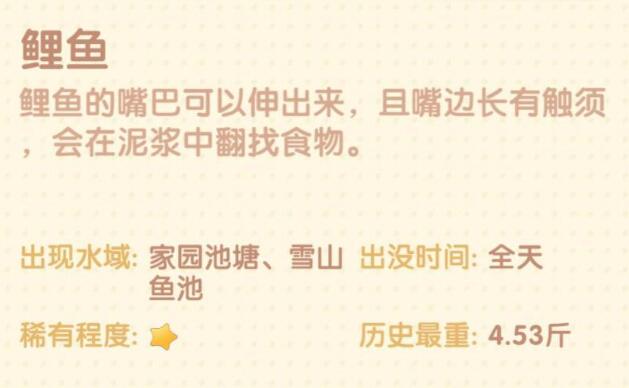 摩尔庄园手游鲤鱼是一种灰色的鱼,嘴边还有触须,大大的眼睛很可爱。摩尔庄园手游鲤鱼在哪?下面小编给大家带来摩尔庄园鲤鱼获取位置介绍,一起看看吧。