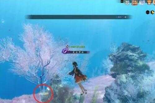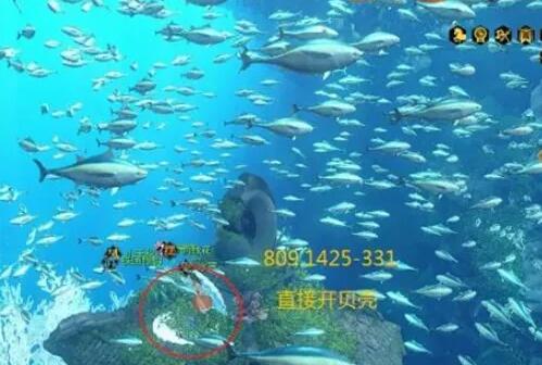 我们传送到海底,然后来到(726,1568-233)这个位置,打开这个贝壳,需要通过三个鱼身上的泡泡才能打开,打开后即可完成南海探秘。
