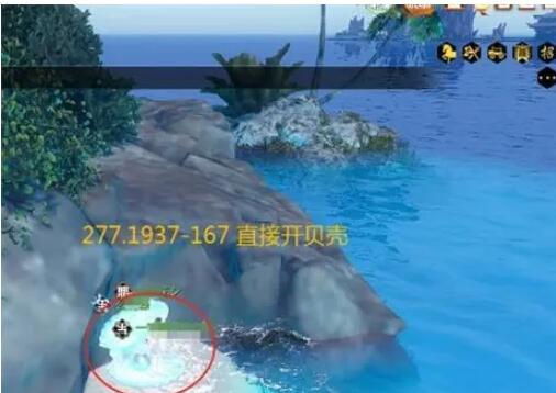 我们在(277,1937-167)这个位置开贝壳,然后传送到风情岛,从我们的右手边走,即可到达。