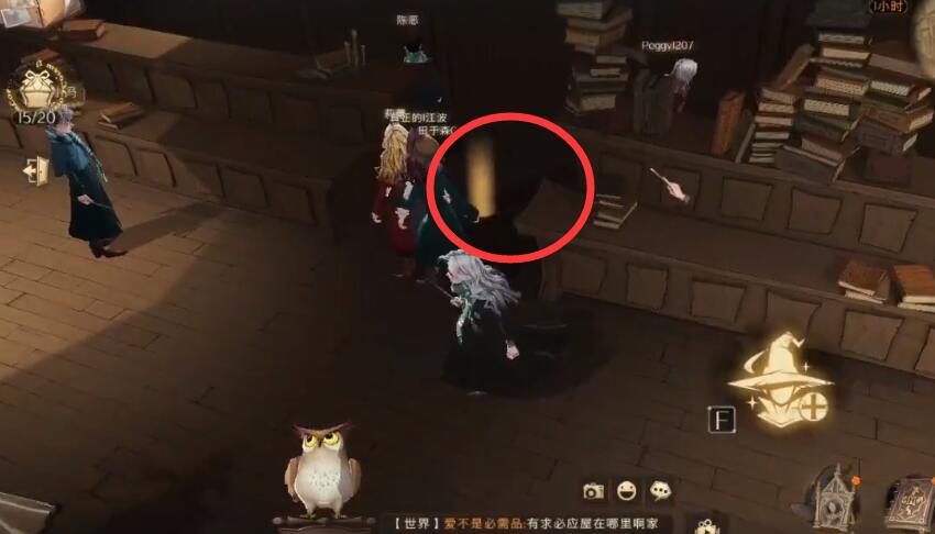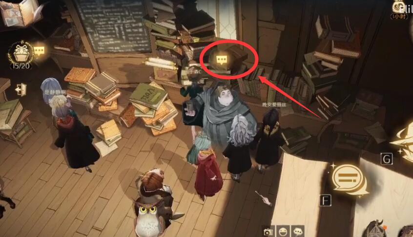 2、之后会自动进入魔咒课教室,找到胖修士,点击他头上的光标,和他对话;