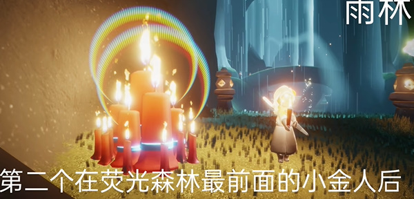 2、接着需去往雨林蘑菇图,在地图出口的小金人旁即可找到;