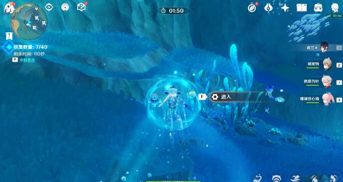 1、根据路线120秒内收集40个水之微粒。