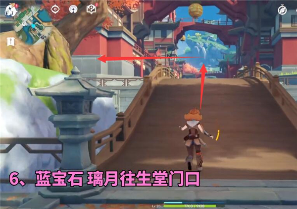3、走到木桥的终点,往左转,到往生堂的门口;