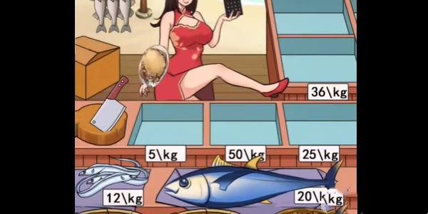 1、首先将第一个带鱼放置5/kg、第二个河豚给大嫂擦鞋用、第三个金枪鱼放置50/kg、第四个小鱼放置后面的挂架10/kg;