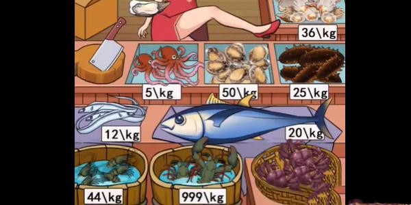 3、之后需将第九个海参放置25/kg、第十个龙虾放置999/kg、第十一个小虾放置44/kg、第十二个生蚝放置30/kg,然后即可通关。