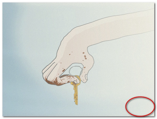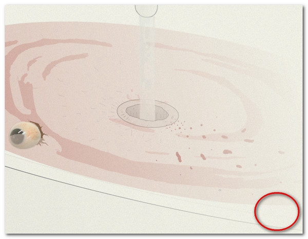7、随后玩家点马桶看到一个人头,点嘴巴得到一把钥匙,点画面右下脚。