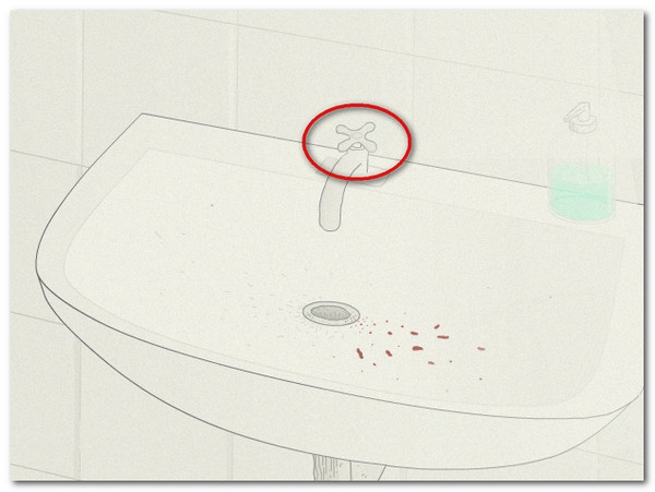 5、然后玩家点水龙头,点确定洗手(这个可以不点,点了会有眼球出来,不点不影响游戏发展)。
