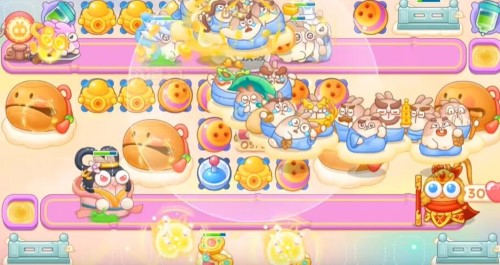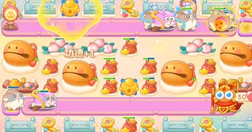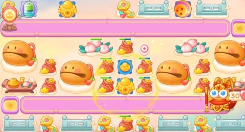 2、建立元宝打钱袋,保龄球打桃子可以打到下面的兔子。