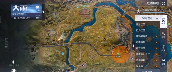 1、我们需要在下雨天气的时候前往黑莓镇,坐标位置:(4784,-5345)。