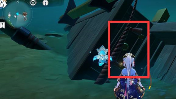 4、第四块石板在荒海,完成解密任务后水位下降出现传送锚点,传送到破船边上,在里面找到石板。