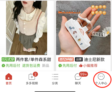 1、首先我们打开拼多多,然后点击右下角的【个人中心】。