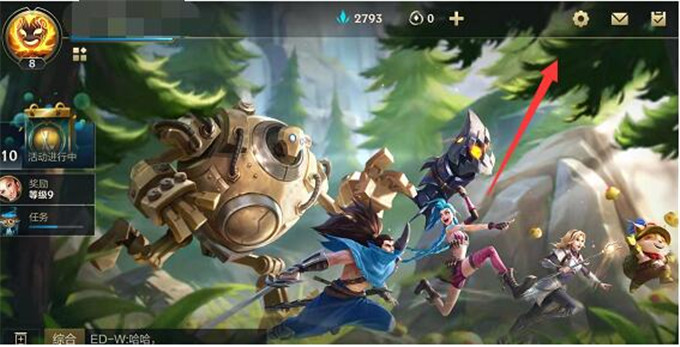 1、首先打开英雄联盟手游,点击右上角的齿轮图标,进入设置界面;