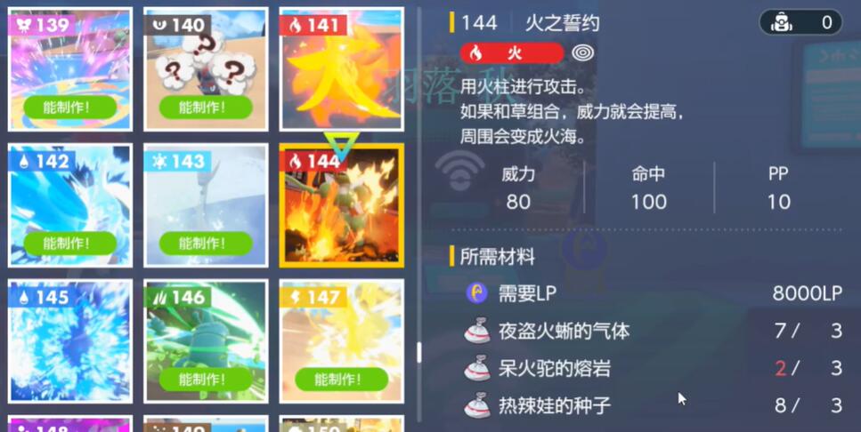 8000LP、夜盗火蜥的气体*3、呆火驼的熔岩*3、热辣蛙的种子*3