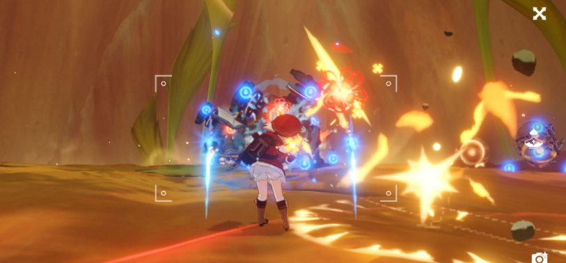 3、进入战斗后,我们先使用角色进行攻击,有了能量就可以来拍照了。尽可能多的将敌人身上的能量拍进来。