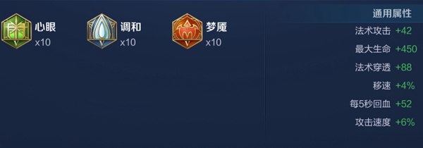 3、第一套铭文:10梦魇、10调和、10心眼