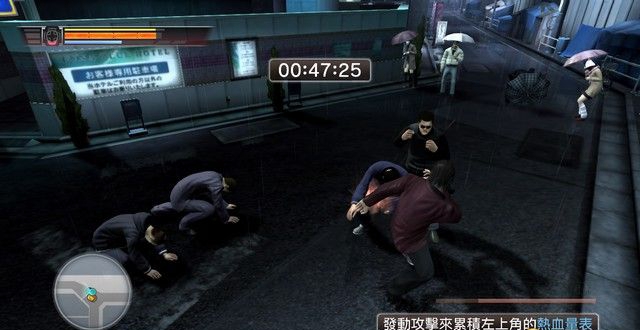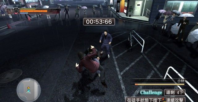 但是他们所做的生意影响了地下钱庄的生意,所以会有混混来找秋山骏,你需要打败这些混混,点击鼠标左键攻击,右键是重击,E键是抓取。混混比较好打,随便解决!