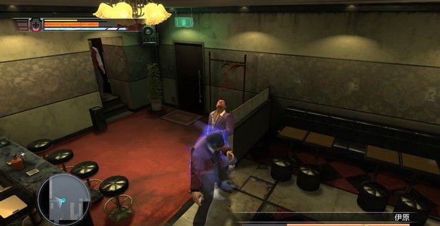 玩家进入酒吧,便可以看到小混混在闹事,你上去教训他们。