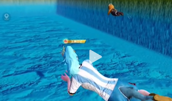 6、然后玩家就会到达天然泳池,在这里玩家直接跳下去即可跳入水中。