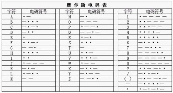解析:根据电码表进行对应“.-”对应A “-..”对应D “--.”对应G “....”对应H “---”对应0 “.-.”对应R “-”对应T “..-”对应U “.--”对应W 得出电文:What hath God wrought(上帝所做之功)1844年的今天,首个摩尔斯电码信息被发送,其内容是《圣经》中的一句话“上帝啊,你创造了何等的奇迹"。