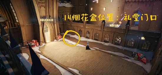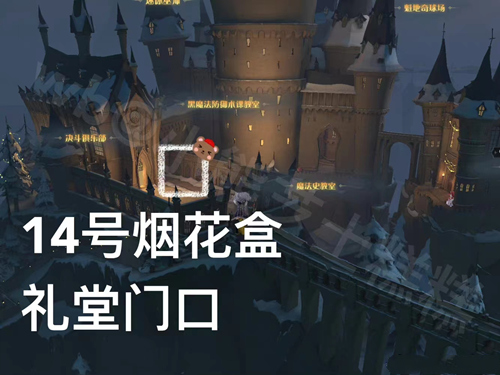 2、然后我们来到礼堂大门右侧,降落下来即可。