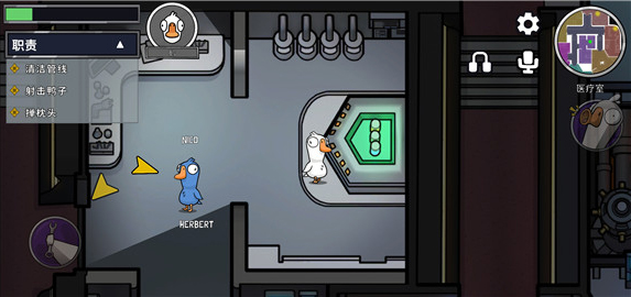 3、和太空狼人杀一样,鹅鸭杀的地图中也有很多的任务点,鹅完成任务的所有进度就可以取胜,鸭子则可以破坏鹅做任务的进度。鸭子可以做破坏任务来造成场面混乱,坏人也可以做好人任务,但任务无效。