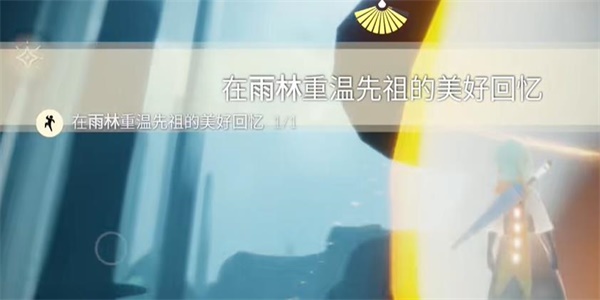 2、之后玩家需去往雨林蘑菇图入口亭子的左前方位置的山洞上找到先祖重温即可;