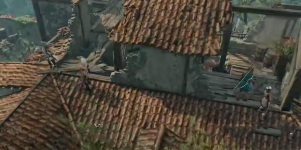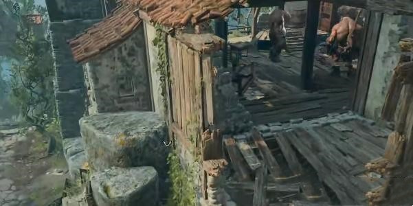 2、接着绕道房子右边,之后从木梯爬上去与食人魔战斗;
