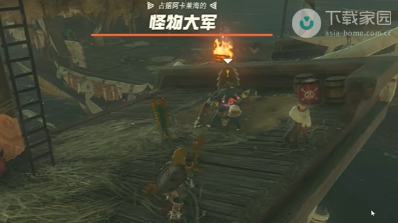 2、从旁边梯子这爬到船的上面,会看见怪物大军,此时需要玩家将其消灭;