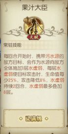 天赋【果汁大臣】每一层在降低敌方25%生命值的同时还会降低8%的攻击力,是非常强力的buff类技能。