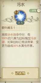 技能【分水剑】可以为敌方群体增加一层污水源效果。