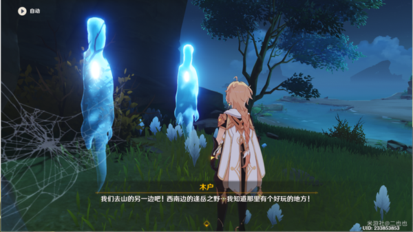 木奈与木户对话,前往看宇奈奶奶,然后去东边的海滩玩,可以看见千来神祠