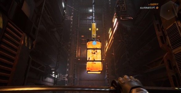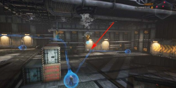 1、在这里,敌人很多,先用钩索钓过去将箭头处的能量球击碎,然后立刻将旁边的敌人击杀。