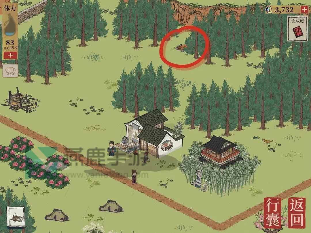 第三个宝箱在树林里面,附近有女娲画苑和画室。