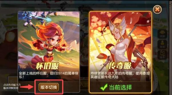 2、然后在这里可以选择怀旧服以及传奇服进行不同的切换。