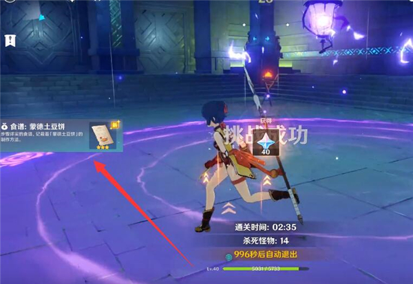 4、我们击杀丘丘人,挑战成功即可得到蒙德土豆饼食谱。