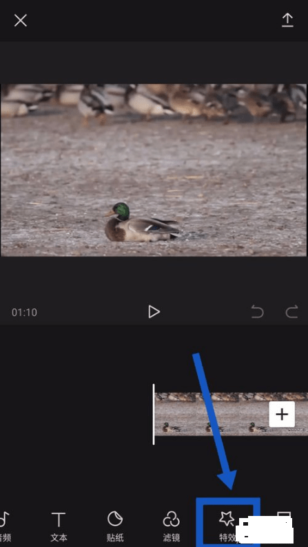 3、在打开的界面中,我们可以看到各种功能。有文本、贴纸、滤镜、特效等,大家可以根据自己的需求进行选择。