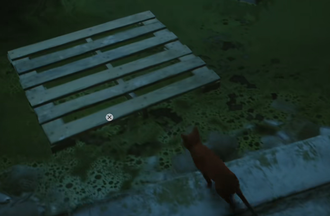 4、走到前方水域,跳到水中的板子和桶上即可过去。